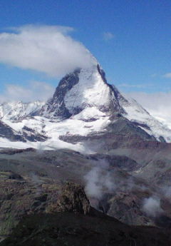 マッターホルンの雄姿、高山植物の花の写真、そしてツェルマット市内の風景を掲載しています。