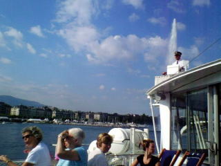 ジュネーブ駅で購入したスイスパスを見せて乗船しました。天候は晴れで,風もほとんどなく絶好の船旅日和になりそうでした。