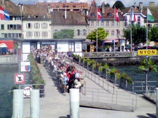 ニヨン(NYON)の船着場で乗船を待っている人たち。