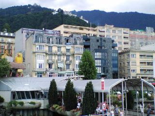 5時間半の船旅を終え,モントルーの船着場に着きました。予定よりやや遅れての到着でしたが,列車の発車時刻までは十分余裕がありました。船着場から駅までは歩いて移動しました。
