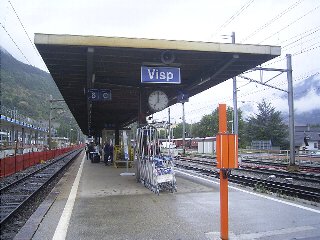 フィスプ駅のホーム。ここで,別の列車に乗り換えてツェルマットへ向かいました。